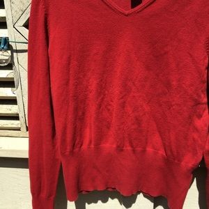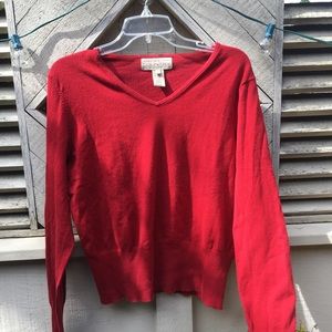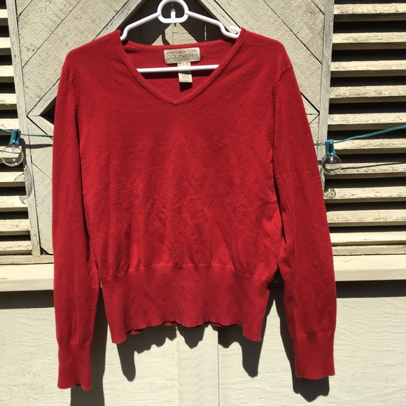 Red V neck sweater. Very soft, not itchy, and in great condition! Size large, Brand: Jones New York Country essentials. 77% cotton 19% nylon.