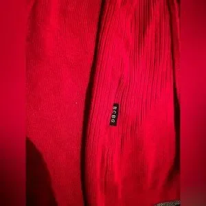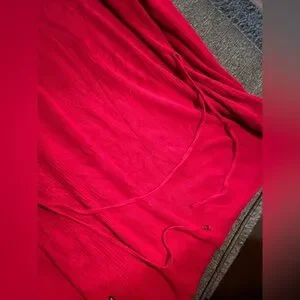 Beautiful vibrant red with ribbed texture. Bought for a holiday party but didn’t wear it. You can wrap the tie towards the front or the back and cinch the waist nicely. No stains or rips.