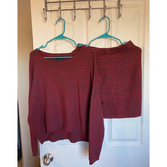 Red Sweater Long Sleeve and Skirt Matching Set