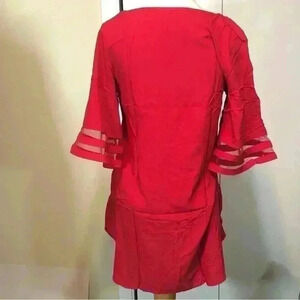 Red Swimsuit Cover Up 3/4 Bell Sleeve Beachwear V-Neck Bikini Beach size small