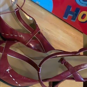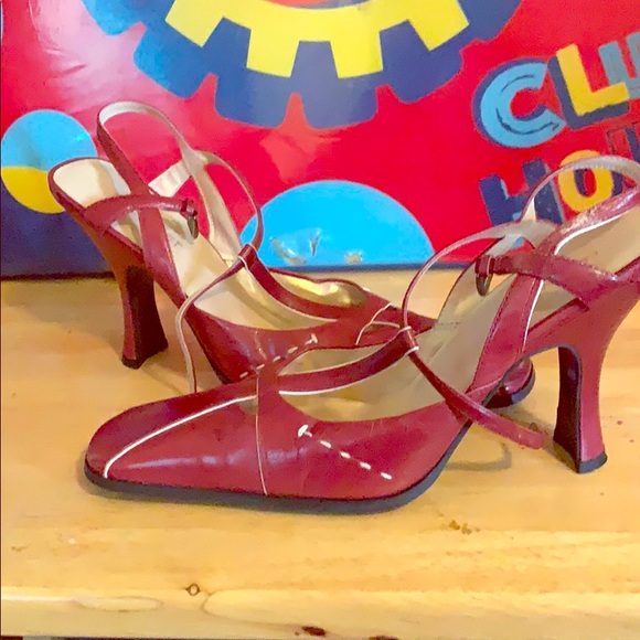 Red with white trim T Straps. Only worn Twice for evening affairs