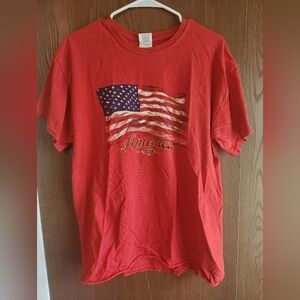 Celebrate patriotism with this vibrant red' t-shirt featuring a bold American flag design. Perfect for casual wear and showing national pride.