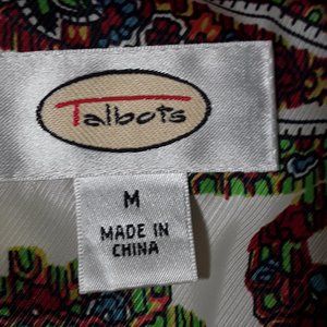 A lovely Talbots brand red puffer vest with patterned paisley style lining, size medium. Excellent condition