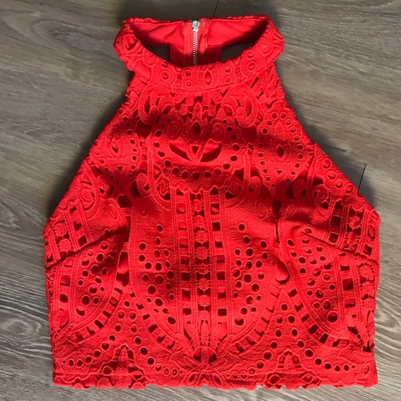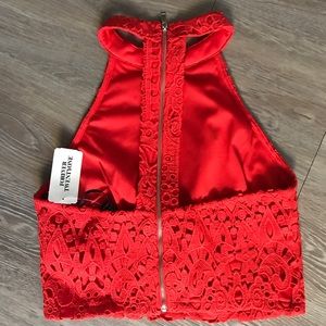 Never worn, tag still on. Red and nice quality material. High neck. Mostly open back with a zipper.