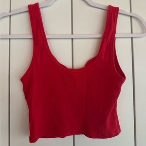 *Red Notch-Neck Tank Top* •cropped tank •size small •super stretchy and comfy •great condition
