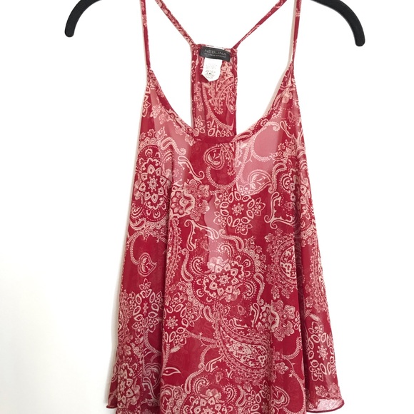 Red Paisley tank top with open back One Once