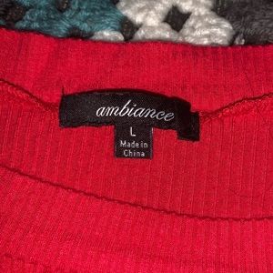Worn once! Has no tags, in very good condition, has ties on the end to knot on both sides. Is listed as a Large but me who normally would fit in a small fit perfectly! Goes together very nicely with jean shorts and sneakers.🌹