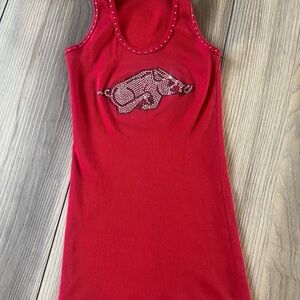 Razorback red tank top featuring a rhinestone design. Perfect for casual wear. Size Large. Fitted top. Runs small