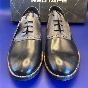 Step out in style with Red Tape's black leather dress shoes. Perfect for any formal occasion, these shoes offer both elegance and comfort. Size 12 new in box.