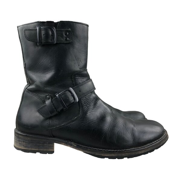 Red Tape Men's Size 11 Salisbury Buckle Black Leather Side Zip Ankle Biker Boots