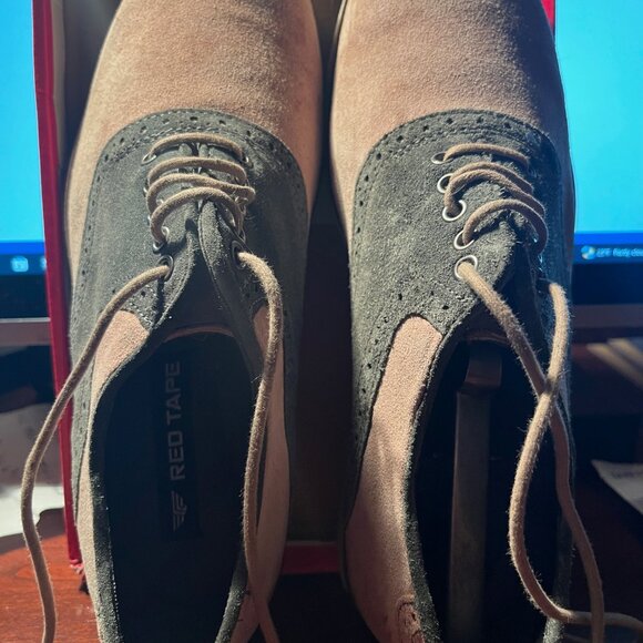 Red Tape men's 8.5 pink and gray saddle shoes, like new condition with shoe trees, in original box.