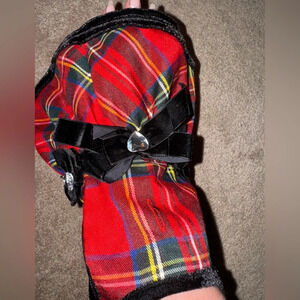 Red Tartan Plaid Christmas Dress with bows and Gems for Dogs Size Small