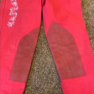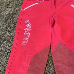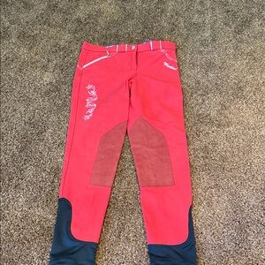 Stylish and durable red Tattini riding pants, perfect for equestrians.