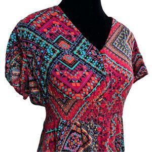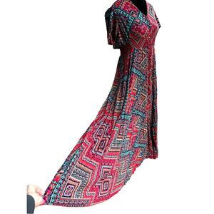 Red & Teal Boho A-Line Patchwork Maxi Dress Women's Size Medium