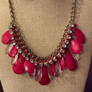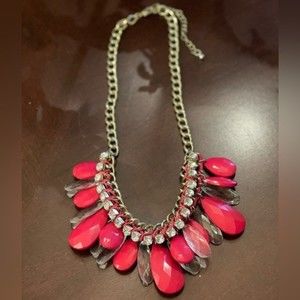 Vintage Red Teardrop Rhinestone Statement Necklace. In good preowned condition.