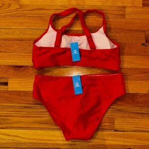 Dive into style with this vibrant red textured bikini set. Perfect for a day at the beach or pool. Top and Bottom both size L. Brand New!