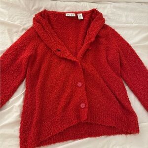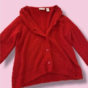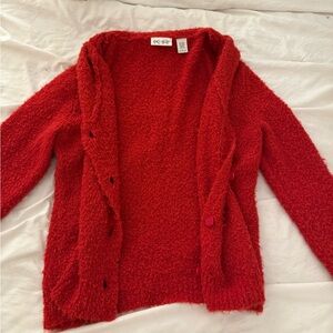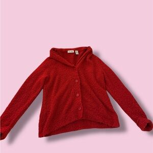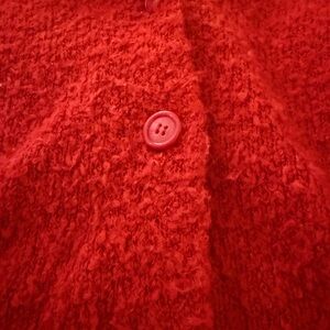 Cozy red textured cardigan with button closure.
