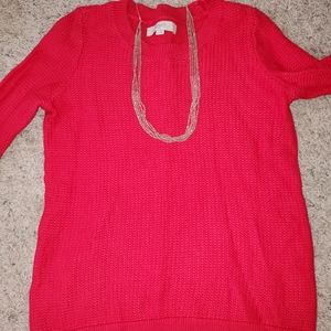 Perfect textured red sweater with button sleeves. Never worn