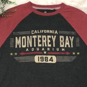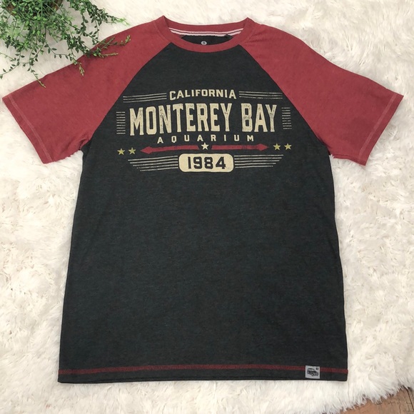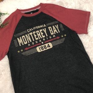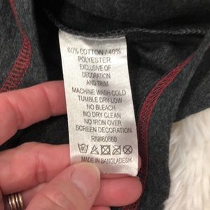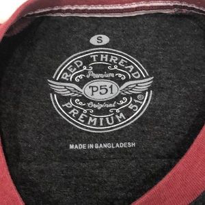 Charcoal gray and red, Red Thread tee, size small, in gently preowned condition.