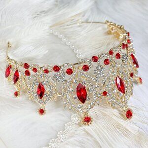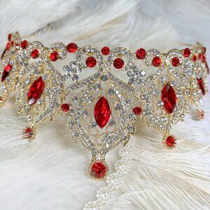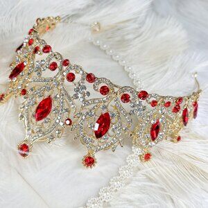 Red Tiara and Crown for Women, Queen of Heart Crown, Royal Queen Crown, Gifts