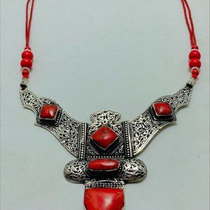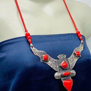 Red Tibetan Coral Gemstone Handmade Necklace,Beaded Chain Nepalese Style Necklac