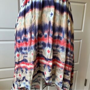 Keywords: strapless dress, tie dye dress, red dress, summer dress, casual dress, sundress, high low dress, bohemian dress, boho dress, beach dress, vacation dress