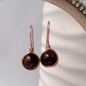 Copper wire wrapped earrings with dark reddish brown tiger eye beads
