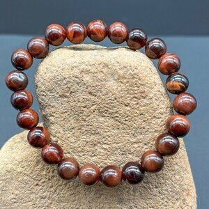 Red Tigers Eye Gemstone Stretch Bracelet Handmade