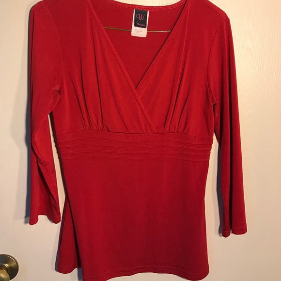 Red 3/4 sleeve top. Thin material, form-fitting. Super cute! Excellent condition.