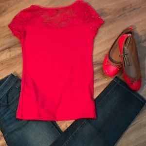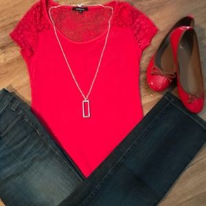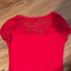 Very cute and fitted red with lace top.