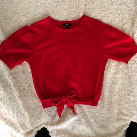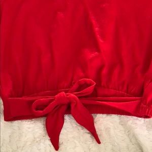 Balloon type sleeves. Tie/bow at bottom. Never worn