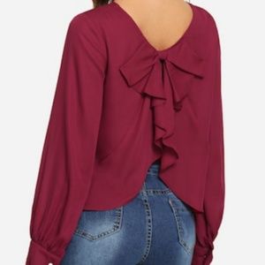 Brand new red top. Bow embellished ruffle blouse