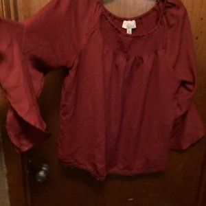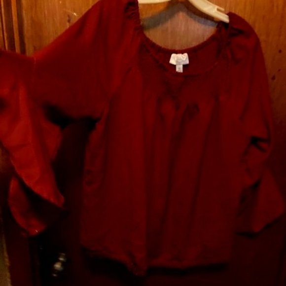 Off Shoulder, EUC, Red Top with Bell Sleeves.