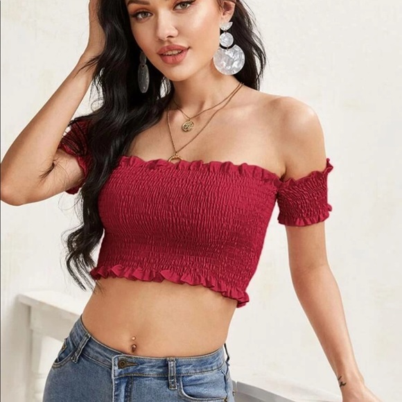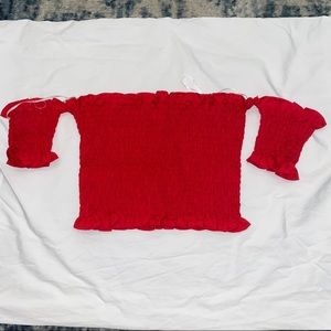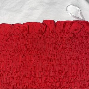 Super comfortable and very flattering on, never worn, red! fits size small or xs