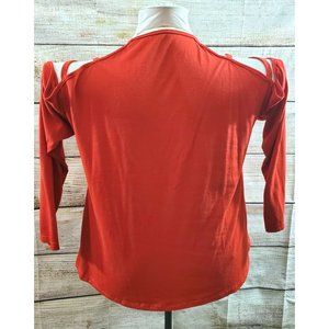 Bright red sexy long sleeve top with shoulders cutout and straps across the open areas. No tags but it wears like a women's size 2X.