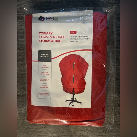 Durable red storage bag for topiary Christmas trees. Features sturdy handles and adjustable fit for trees 3-4 ft tall. Topiary Christmas Storage Up To 4 Feet Red Upright Tree Bag Organize Durable