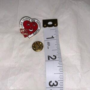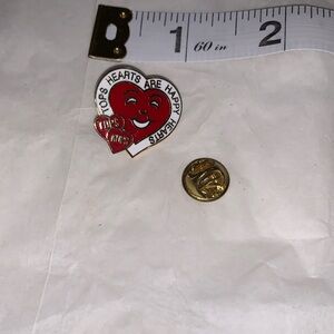 Charming red heart enamel pin with a cheerful design. Perfect for adding a touch of fun to any outfit. Tops Hearts are Happy Hearts S-A x