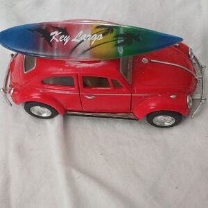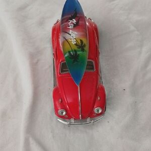 Exciting red toy car with a colorful surfboard. Perfect for imaginative play and adventure.