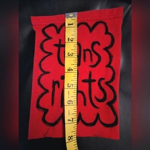 Upcycled red Tshirt fabric patch hand-painted with black screenprint ink. A one of a kind piece of wearable art- OR frame it as wall art!