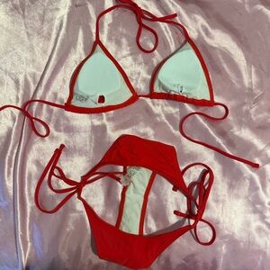 Stylish red triangle bikini set with adjustable ties. both size small!