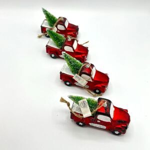 Set of 4 Red Truck carrying a Christmas Tree Ornaments