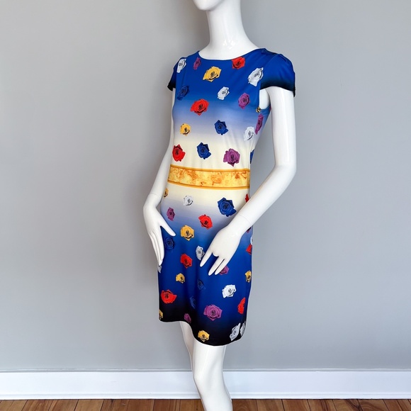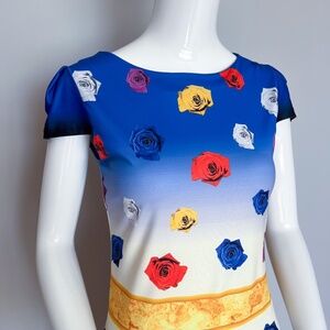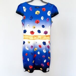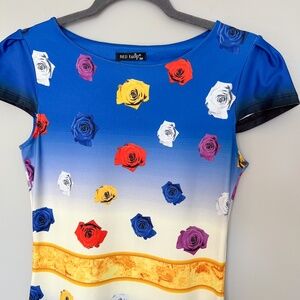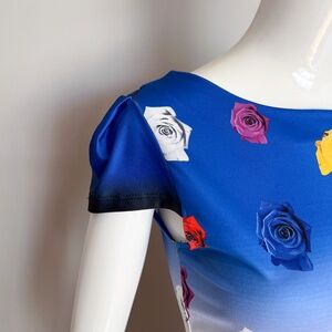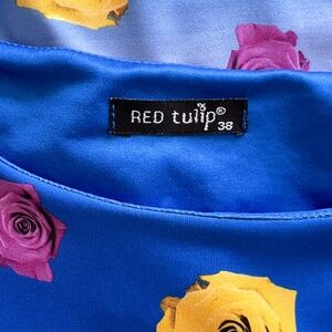 Red Tulip Mini Bodycon Stretch Floral Summer Dress Blue Multicolor Roses Dali 4