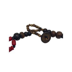 This Red Turquoise Resin Bead Brass Necklace with Fish Dangle Earrings adds a tribal ethnic touch to any outfit. The 20" necklace is adorned with unique beads, making it an eye-catching accessory.