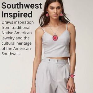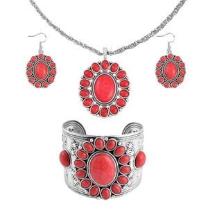 Red Turquoise Jewelry Chunky Set Western Cowgirl Boho Accessories New