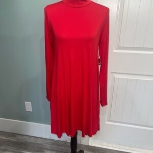 Bellamie Red Turtleneck Solid Pocketed Dress