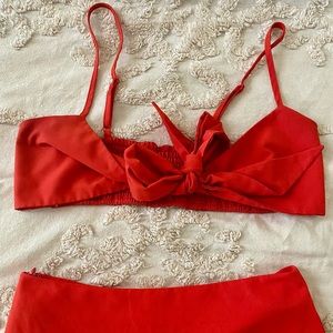 Top has adjustable straps and a tie front so you can adjust it to fit you. It covers a lot more than it looks like - fits A-C cups. (If needed I can upload a pic of me in it for reference)