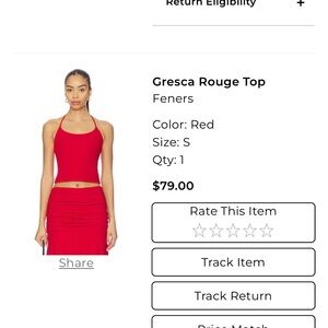 Stylish red two-piece set with a halter top and skirt. Perfect for summer outings.