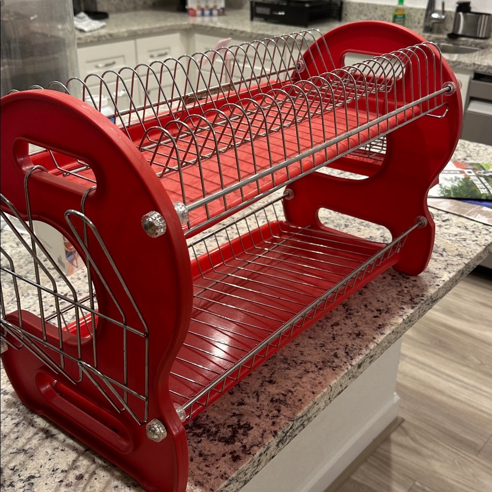 Red Two-Tier Dish Rack