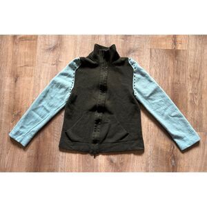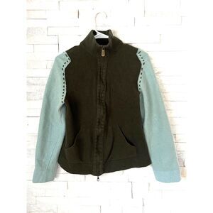 Red VALENTINO Green Gray Full Zip 100% Wool Sweater Jacket
