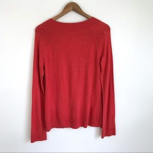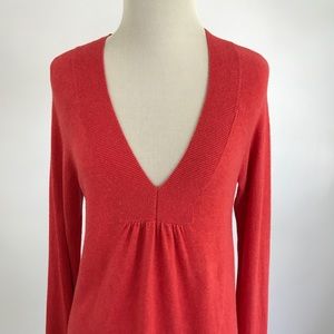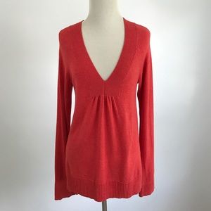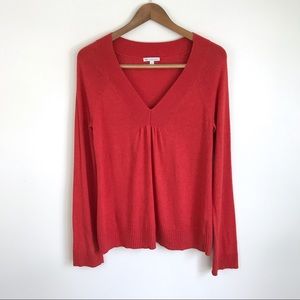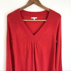 Red v-neck GAP pullover sweater. 80% cotton, 15% viscose, 5% cashmere. Size M. Approx. 18” bust, 26” long from shoulder to hem. Some very minor allover pilling/fading from a single wash/wear. Otherwise in perfect condition.